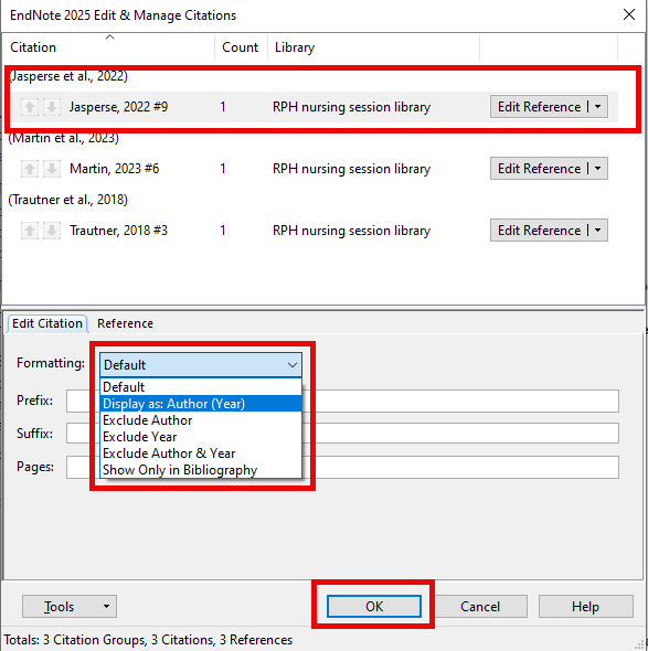 Instead, you must use the Edit & Manage Citation(s) functionality in the EndNote 2025 tab.